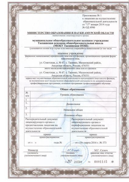 | Сокращенное наименование образовательной организации* | Муниципальное общеобразовательное бюджетное учреждение Таскинская основная общеобразовательная школа (МОБУ Таскинская ООШ) |